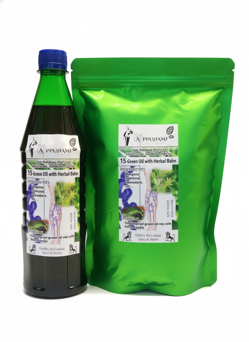 Made with Margosa, Heeressa, Dewadara, and other herbal extracts. Helps soothe tired, swollen, or heavy legs and supports relief from foot and vein discomfort. Mix with Herbal Spice Balm and apply externally for best results.