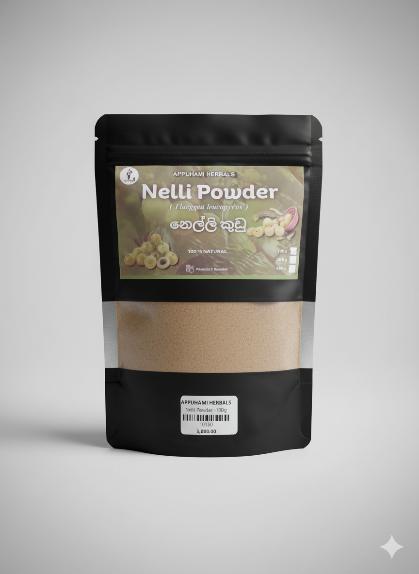Nelli (Phyllanthus emblica), also called Indian Gooseberry, is one of the most potent natural antioxidants. It helps boost immunity, support digestion, and rejuvenate cells from within. Appuhami Nelli Tea has a refreshing sour-sweet flavor and is entirely caffeine-free. Perfect for daily use to maintain vitality and a radiant complexion.