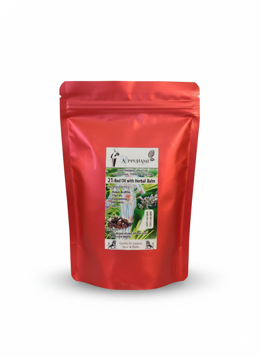 This traditional herbal oil is prepared with Heen Araththa, Gingerly (Sesame Oil), Dewadara, and other native Ayurvedic herbs known for their warming and penetrating properties. When combined with Herbal Balm, it helps stimulate circulation, reduce stiffness, and relax tight or painful muscles and joints.